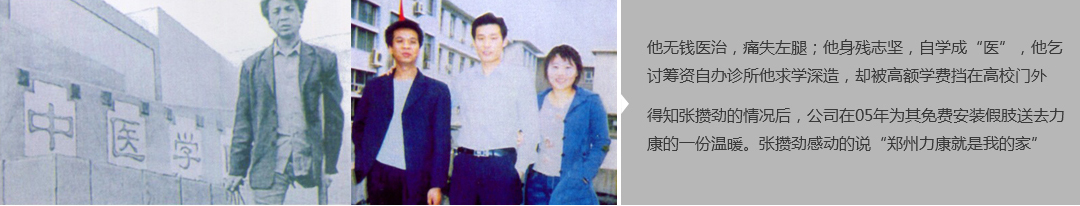 鄭州市力康假肢矯形器有限公司(簡稱力康),是一家專業(yè)從事假肢矯形器的設(shè)計、研發(fā)、制作及裝 配的專業(yè)機構(gòu)。成立于1992年是河南省唯一一家福利企業(yè)。力康下設(shè)業(yè)務(wù)部、技術(shù)部、住院部、康復(fù) 部、售后服務(wù)部,并配有現(xiàn)代化的裝配車間和功能齊全的訓(xùn)練大廳,為殘疾朋友康復(fù)訓(xùn)練提供了可靠 保障??偨?jīng)理穿戴假肢多年,有著豐富的臨床經(jīng)驗和親身體會;多年來,力康已為全國幾十萬名殘疾 朋友安裝上舒適、美觀、耐用的假肢和矯形器具,使他們更大限度地恢復(fù)了正常的工作和生活?!爱a(chǎn) 品即人品”的質(zhì)量理念、先進的技術(shù)、實惠的價格、完善的售后服務(wù)是力康取勝的法寶……